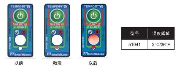 TempDot™ Minus標(biāo)簽需存儲在室溫下,并且必須在反應(yīng)溫度 以上被激活。激活是通過用手指推壓,標(biāo)簽 底部的小窗口變?yōu)榧t色或部分變紅色以指示激活,但激活后并不需要保持紅色。當(dāng)使用了上述反應(yīng)溫度 標(biāo)簽的產(chǎn)品暴露于閾值以下的溫度,白色的大窗口變?yōu)榧t色或部分紅色,,在反應(yīng)溫度 以上將溫度標(biāo)簽用 于產(chǎn)品。如果一個產(chǎn)品暴露于閾值以下的溫度,白色的大窗口變紅色或部分紅色,,TempDot™ Minus標(biāo)簽 提供即時的視覺指示。為達到最佳效果,標(biāo)簽應(yīng)保持垂直位置,其反應(yīng)期間,,紅色箭頭須指向上方。